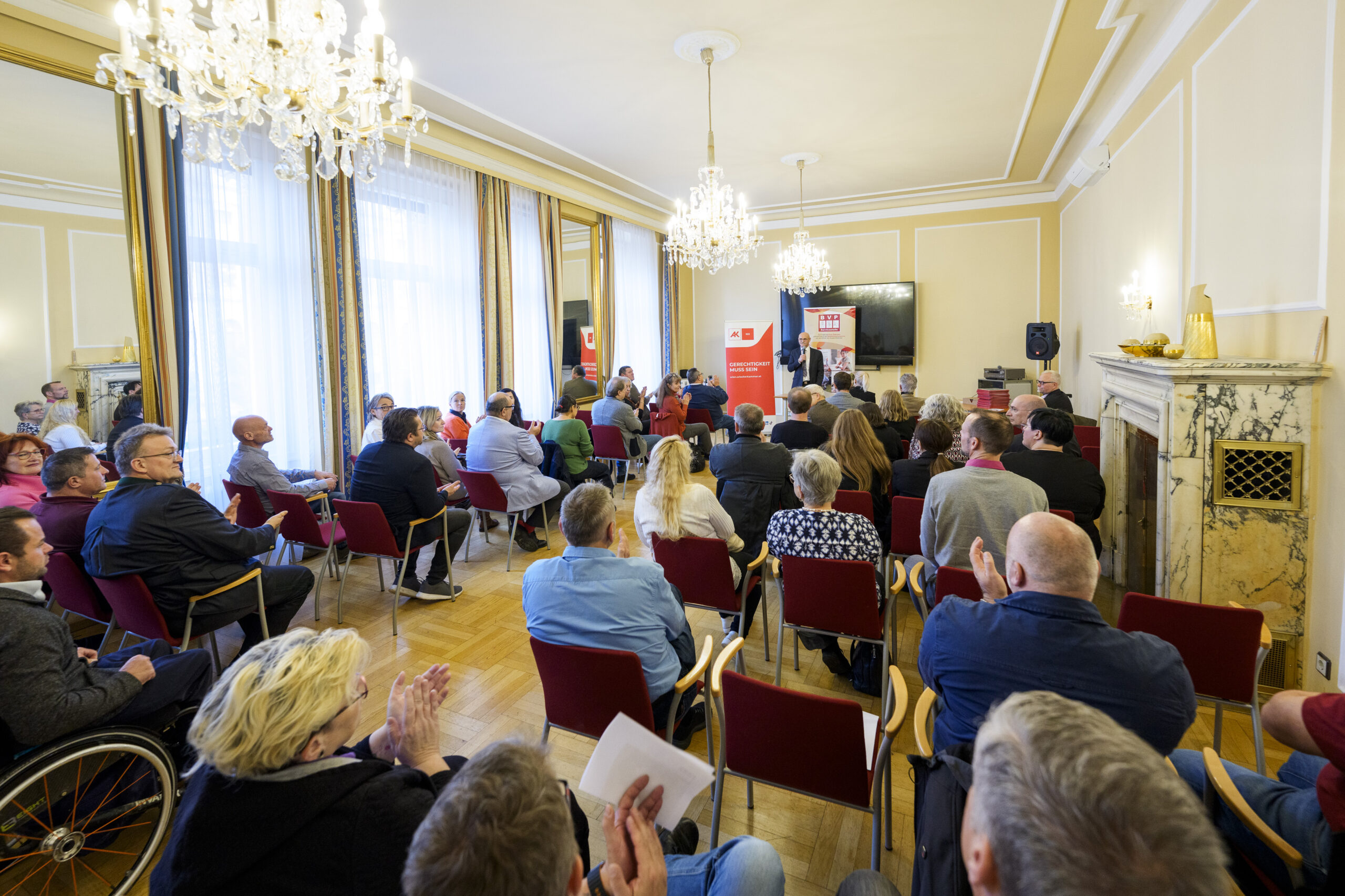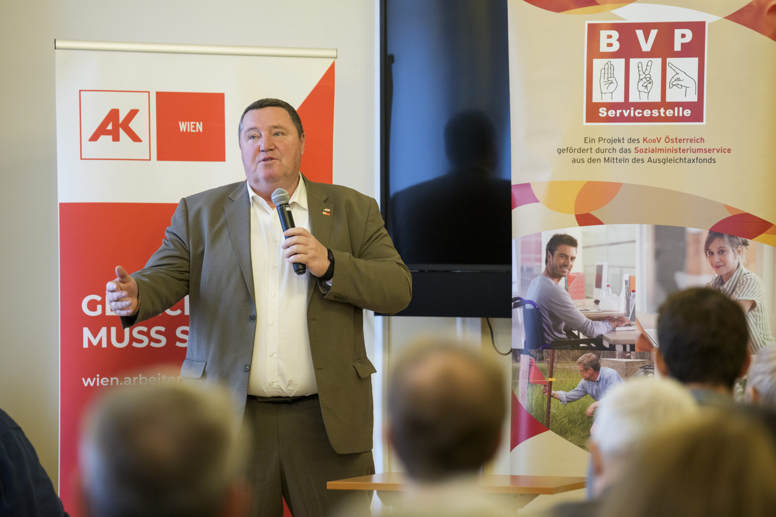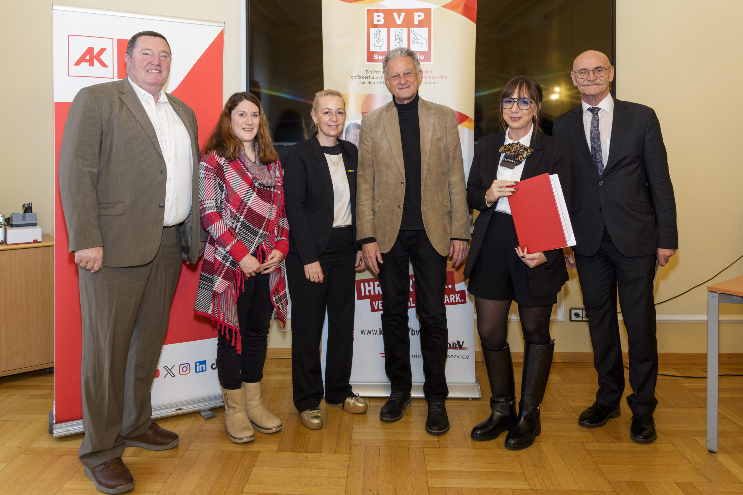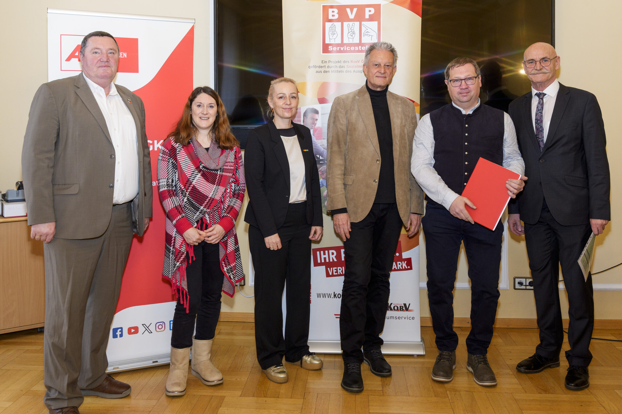 Im Rahmen eines feierlichen Festaktes der 19. BVP-Zertifizierung, abgehalten im Sozialministeriumservice, begrüßte KOBV-Präsident Franz Groschan die zahlreichen Gäste, ehe Vizepräsident Helmut Gruber von der AK Wien seine Gedanken mit dem Publikum teilte. Auch Hofrat Harald Gruber, Amtsleiter im Sozialministeriumservice, und Nina Dirnweber vom VÖGB hielten eine Ansprache. Vor der Verleihung der Zertifikate dankte Mag.a Christine Steger, Anwältin für Gleichbehandlungsfragen für Menschen mit Behinderungen, den Absolvent:innen für ihren Einsatz und ihr Engagement.
